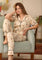 بيجامة صيفي ناعمة بلون بيچ ورسمة كانجارو خفيفة مع بايبينج أسود شيك . ماركةكراميل كود 5066